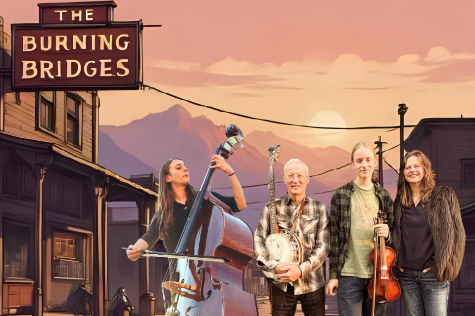 The Burning Bridges are an old-school string band with a repertoire that includes old-time Appalachian fiddle tunes, work songs, early bluegrass and an expanding catalogue of classic-sounding original songs and tunes. Their starkly haunting fiddle and banjo melodies combine with soaring three-part harmonies to create music with a timeless mountain soul.